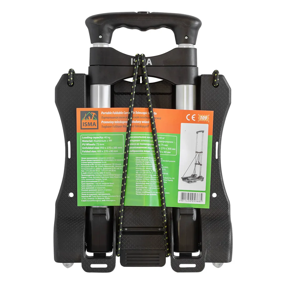 Тележка платформенная складная с телескопической ручкой+2крюка на эластичных ремнях, 270х300 мм, г/п 40 кг ISMA ISMA-109