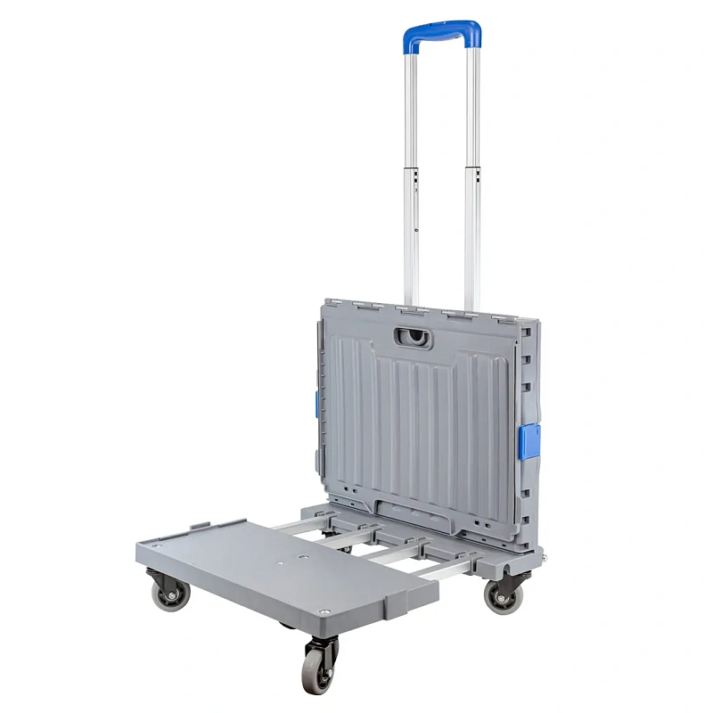 Тележка ручная для багажа и покупок г/п 65кг + набор эластичных шнуров. Размер в разложенном виде:44х34х95см, в сложенном:44х45х18см. Тележка транспортировочная грузоподъемностью 65кг. Складная ручная тележка оснащена 5 поворотными на 360 градусов колесами: тихие и износостойкие колеса значительно улучшают маневренность и устойчивость складной тележки. Регулируемая высота рукоятки: тележка имеет эргономичную ручку. Нажмите кнопку на ручке, чтобы отрегулировать высоту. Раздвижная конструкция платформы - увеличивает площадь и трансформируется в пластиковый ящик. Максимальная грузоподъемность 65кг. В комплекте шнур 1,5 метра с крюками для фиксации груза. Тележка - инструмент для транспортировки сумок и груза при совершении крупных покупок, путешествий, переездов, погрузочно-разгрузочных работ, складских операций, садоводства и т. д. Отличный помощник на работе и в быту.Преимущества работы с нами