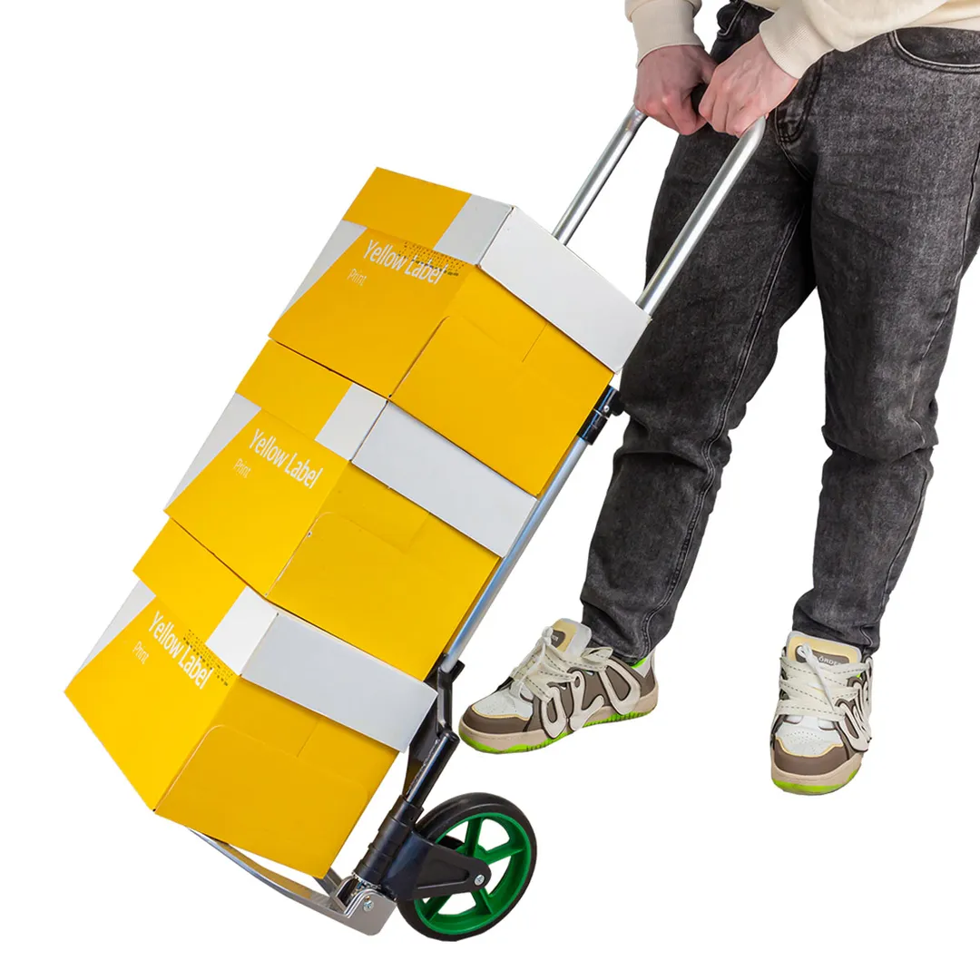 Тележка ручная складная двухколесная с телескопической ручкой г/п 70 кг представляет собой изделие с небольшой платформой, расположенной относительно стойки под углом 90 градусов. За счет небольших габаритов обладает высокой степенью маневренности. Опорная стойка тележки переходит в удобную телескопическую ручку, которая регулируется простым нажатием кнопки. Во время перевозки груза тележка наклоняется к пользователю под углом 45 градусов, что позволяет равномерно распределить нагрузку и без труда перевозить все что вам нужно. используется для перевозки небольших грузов и ручной клади и рассчитана на рабочую нагрузку до 70 кг. Тележка оснащена откидной платформой 255×480 мм, которая имеет противоскользящее рифленое покрытие для стабилизации товара при транспортировке. Тележка- тачка дорожная снабжена двумя мощными колесиками с эластичным покрытием диаметром 175 мм, что обеспечивают плавный зод и бесшумное движение, а также позволяют с легкостью передвигаться по бездорожью, даже в зимний период, и в непогоду. Каркас тележки изготовлен из алюминия, размер в разложенном виде 420×480×980, в собранном виде 55×480×720, вес 3,6 кг. Складывающаяся телескопическая ручка, складывающиеся колеса и платформа позволяют тележке не занимать много места при транспортировке к месту использования.Преимущества работы с нами