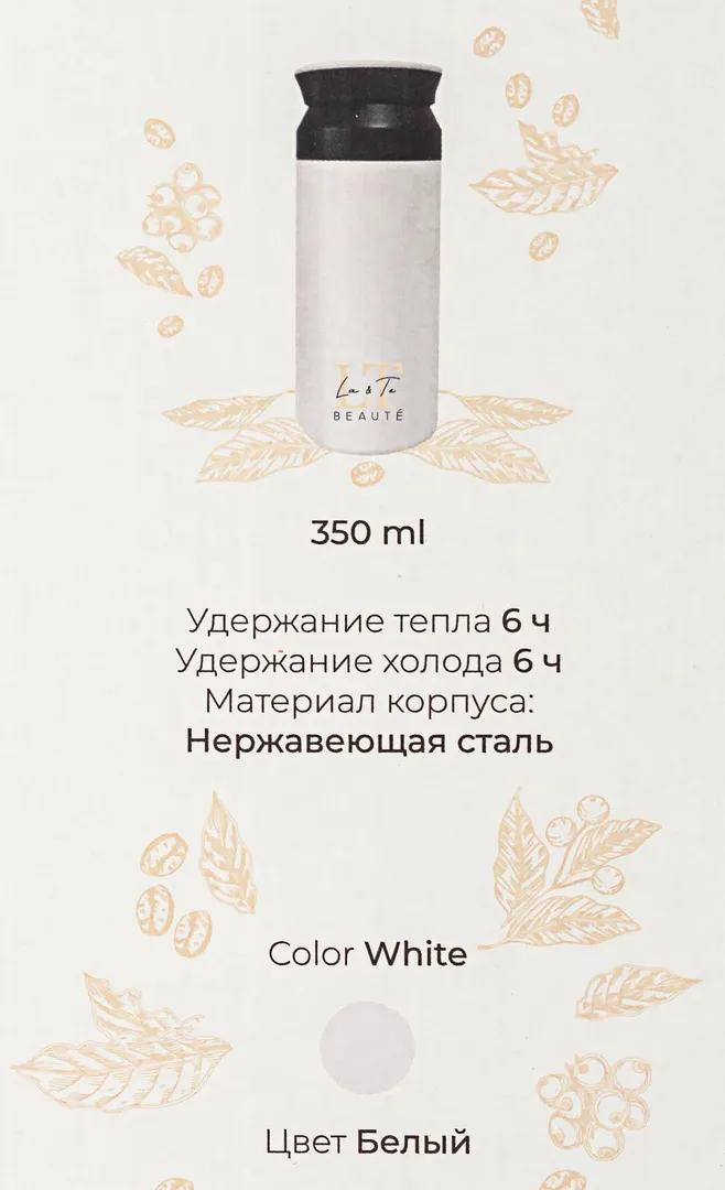 Термокружка 350 мл, нерж.сталь, горячее - до 6 часов, холодное - до 6 часов, цвет белый La and Te beaute LT-350WH