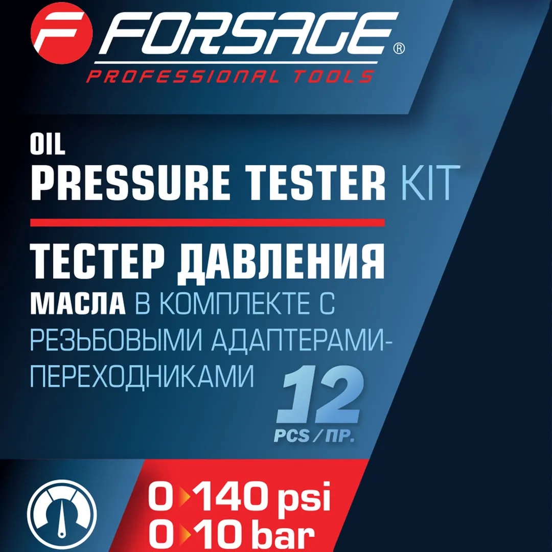Тестер давления масла в комплекте с резьбовыми переходниками 12 пр0-10Bar Forsage F-912G1