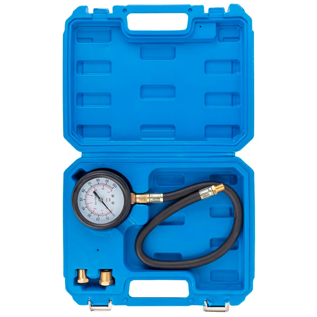 Тестер давления масла в наборе с резьбовыми адаптерами 3 предмета предназначен для диагностики системы смазки двигателя - давления масла. Отклонение уровня давления масла от норм может привести к перебоям в работе двигателя, а так же к его поломке. Данный прибор позволяет тестировать двигатели большинства легковых автомобилей и небольших грузовиков. Комплектация тестера для измерения давления масла в двигателе: адаптеры, подходящие для отечественных и импортных двигателей, манометр в обрезиненном кожухе со шкалой измерения 0 – 100 PSI / 0 – 7Бар. Гибкий шланг с фитингами на концах для быстрого и безопасного отключения. Предназначен для проверки давления масла в двигателях большинства автомобилей. Включает в себя 3 адаптера: 1/8", 1/4", 3/8 " . Диапазон измерений: 0-100 psi (0-7bar). Укомплектован шлангом длиной 600 мм и адаптерами для подключения к системе смазки автомобиля. Для удобства хранения и транспортировки поставляется в прочном пластиковом кейсе.Преимущества работы с нами