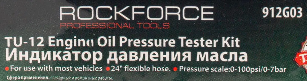 Тестер давления масла в наборе с резьбовыми адаптерами 3 пр., 0-7bar RockForce RF-912G03(RF-903G1), описание и характеристики: