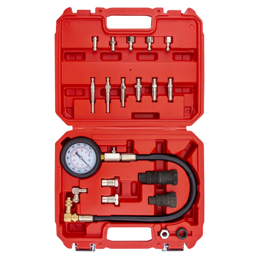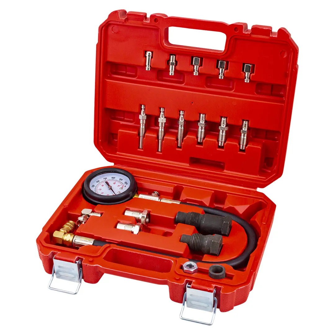 Тестер компрессии дизельного двигателя в наборе с резьбовыми адаптерами, 19пр. (0-70 bar), в кейсе. Предназначен для измерения внутреннего давления цилиндропоршневой группы дизельного двигателя Дизельный компрессометр с гибким шлангом 360мм Резьбовые адаптеры для форсунок: М24х2,0 М24х1,5 Резьбовые адаптеры для свечей накаливания: М18х1,5 х30мм – 2шт М10х1,0 – 68мм М10х1,25 - 54мм М10х1,25 - 68мм М12х1,25 - 45ммПреимущества работы с нами