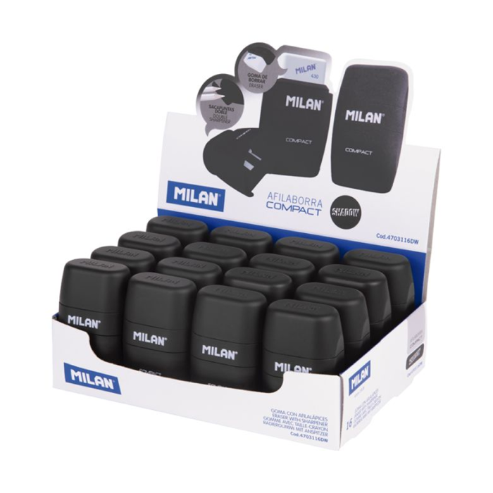 Точилка на 2 отверстия "Compact", с ластиком, черный