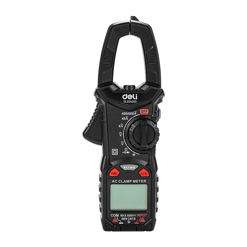 Токоизмерительные цифровые клещи DELI DL334203 используются для измерения переменного тока, постоянного и переменного напряжения и сопротивления.