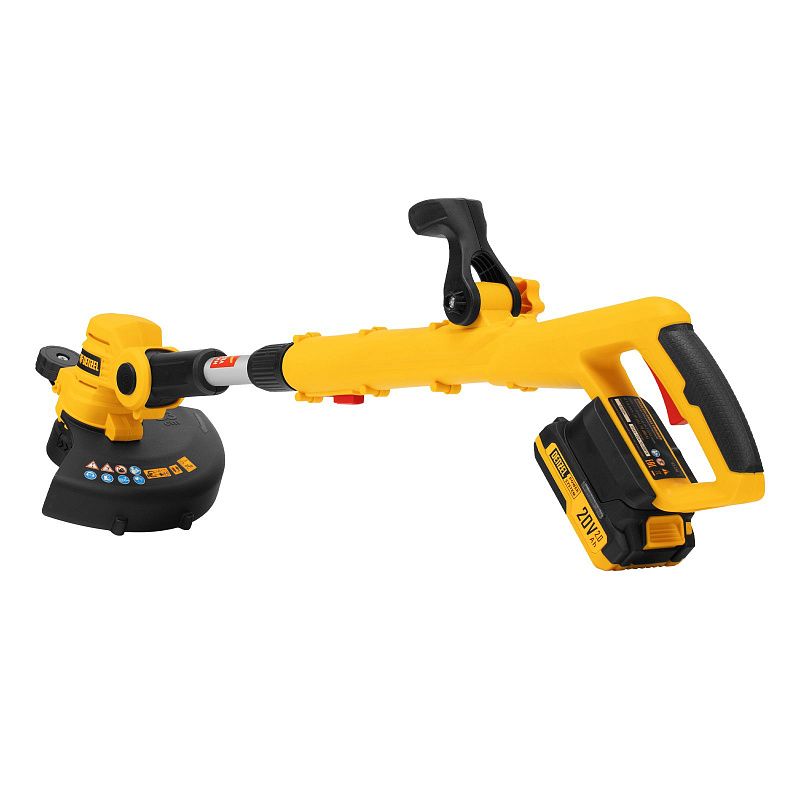 Аккумуляторный триммер Denzel GT-230 58701 предназначен для скашивания травы и сорняков, ширина скашивания составляет 230 мм. Работает от аккумулятора Li-Ion 20 В (универсальная платформа Denzel Power System), благодаря чему позволяет свободно перемещаться по участку. Аккумулятор Li-Ion без эффекта памяти допускает подзарядку без потери емкости, обеспечивает стабильную работу в течение длительного времени. Триммер предназначен для бытового использования, будет полезен владельцам дачных участков.