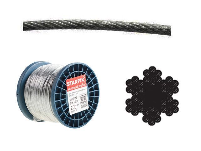Трос стальной, оцинк. М1 DIN 3055 (бухта 200 м) Starfix SMP-53671-200 - доступная цена