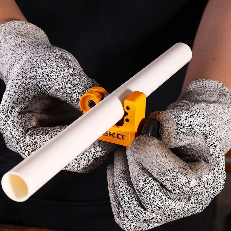 - Роликовый труборез DEKO PC22 предназначен для быстрого и точного реза металлических труб диаметром до 22 мм. Инструмент применяется при проведении сантехнических, монтажных и ремонтных работ с медными, алюминиевыми и стальными трубами. Механизм роликового типа обеспечивает ровный срез без деформации стенок и образования заусенцев, что особенно важно при подготовке труб к сборке и соединению.