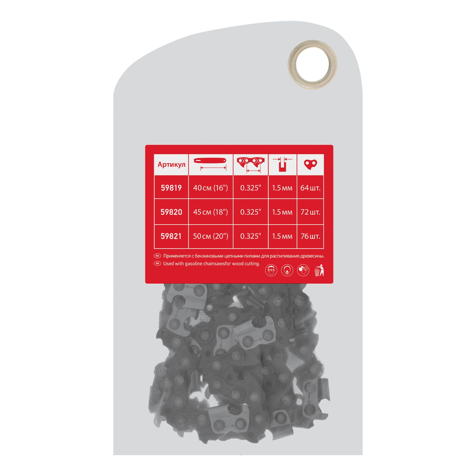 - Долговечность — благодаря чипперному, т.е. серпообразному типу режущего звена цепь легко затачивается и практически не загрязняется.