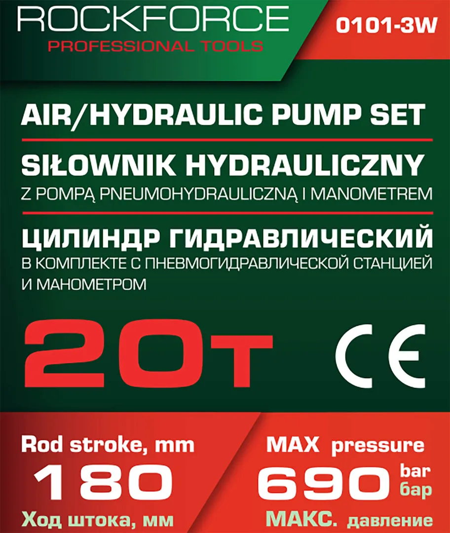 Цилиндр гидравлический 20 т, для пресса в комплекте со станцией гидравлической и манометром RockForce RF-0101-3W
