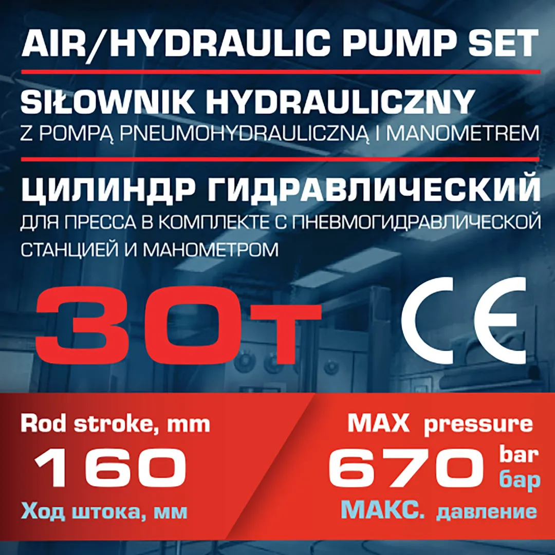 Цилиндр гидравлический для пресса в комплекте со станцией гидравлической и манометром 30 т Forsage F-0101-3Q