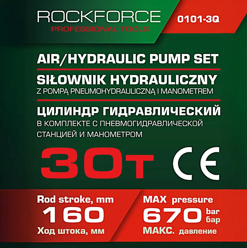 Цилиндр гидравлический для пресса в комплекте со станцией гидравлической и манометром 30 т RockForce RF-0101-3Q