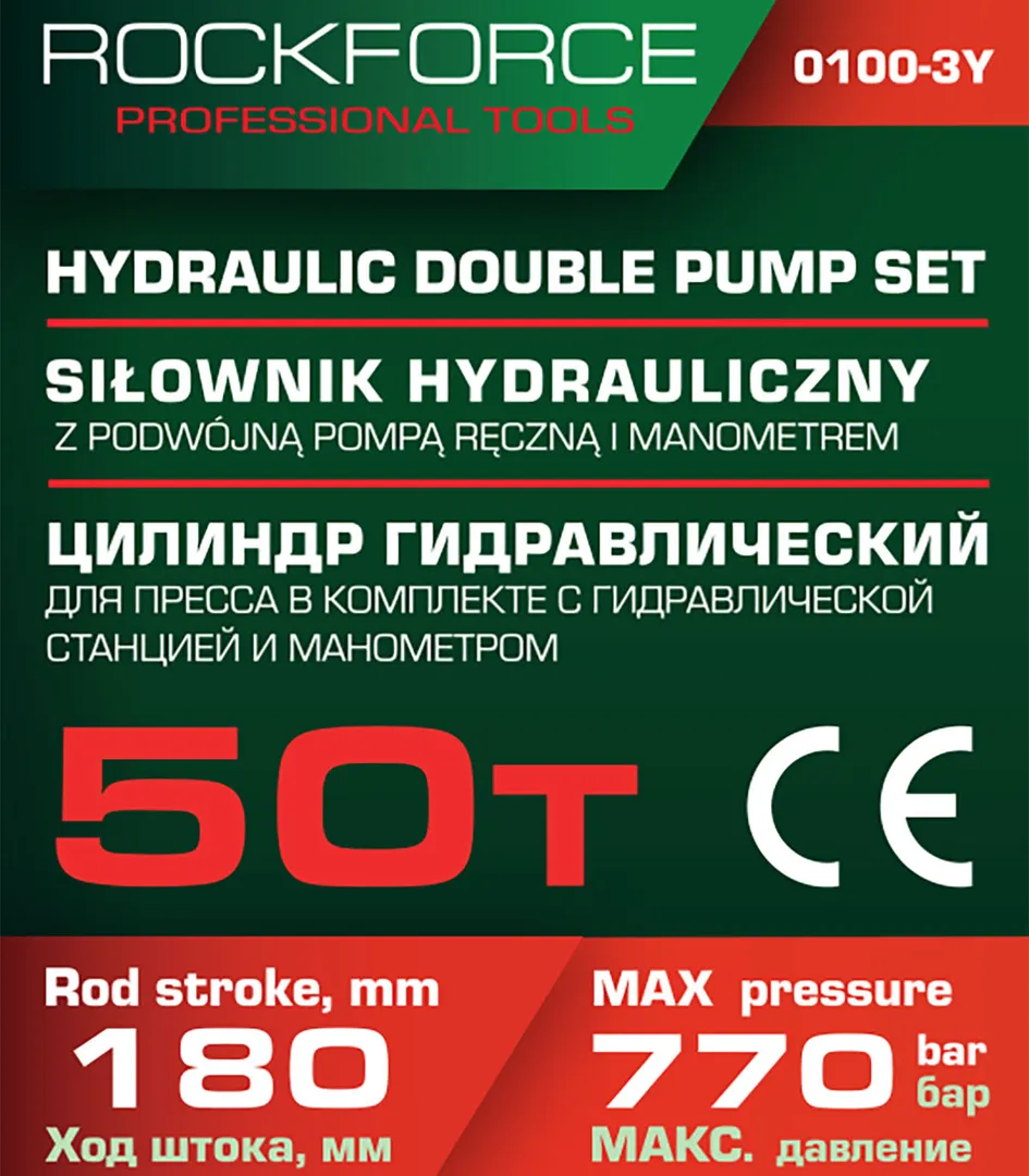 Цилиндр гидравлический 50 т, для пресса в комплекте со станцией гидравлической и манометром RockForce RF-0100-3Y( из 2-х частей)