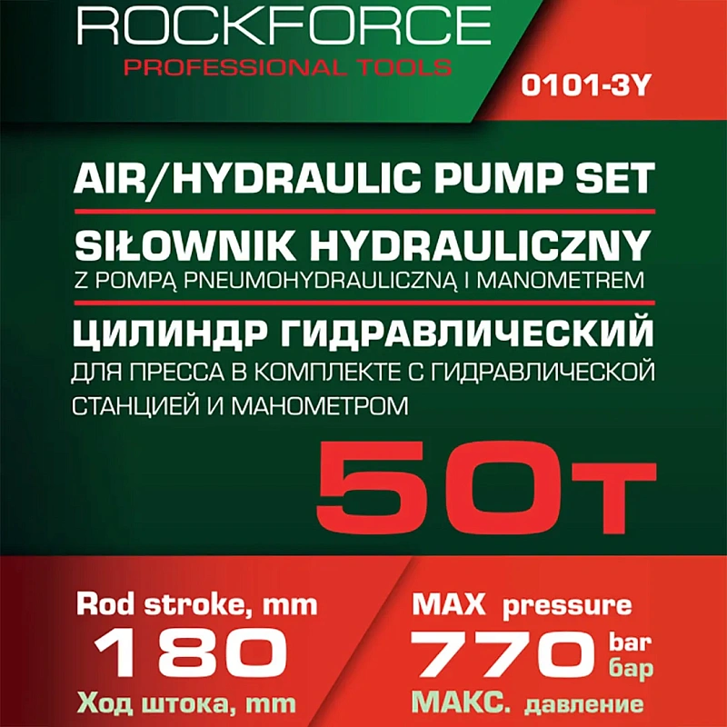 Цилиндр гидравлический для пресса в комплекте со станцией гидравлической и манометром 50 т RockForce RF-0101-3Y[ из 2-х частей]