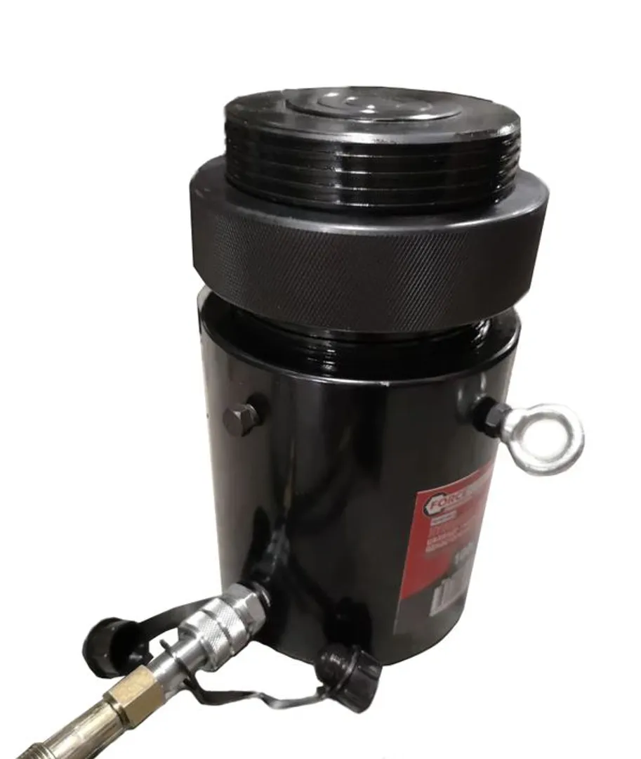 Цилиндр гидравлический 150т используется для промышленного или автогаражного подъемного оборудования с гидроприводом. За счет работы гидравлического цилиндра создается большое усилие, способное приводить в действие тяжелые механизмы, приподнимать грузы и создавать тяговое движение. Цилиндр обладает штоком с резьбой и специальной гайкой, что позволяет фиксировать шток цилиндра в определенном положении при отключении насоса от цилиндра. Устройство может работать в вертикальном, горизонтальном и любом другом положении относительно уровня пола, приводить в движение прессы, создавать контролируемые усилия, необходимые для вытягивания рам автомобилей, и применяться для поднятия тяжестей. Длина корпуса 209 мм, Ход штока – 50 мм, Диаметр штока – 165 мм, Общий диаметр – 208 мм, Давление 700 bar. Гидравлический цилиндр особенно удобен для выполнения различных технологических операций на предприятиях автосервиса. Является востребованным элементом оборудования не только профессиональных автосервисов, но и личных гаражейаПреимущества работы с нами