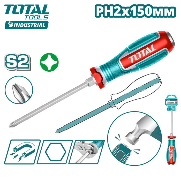 Ударная отвертка крестовая PH2x150 мм TOTAL TGTPH2150 - доступная цена