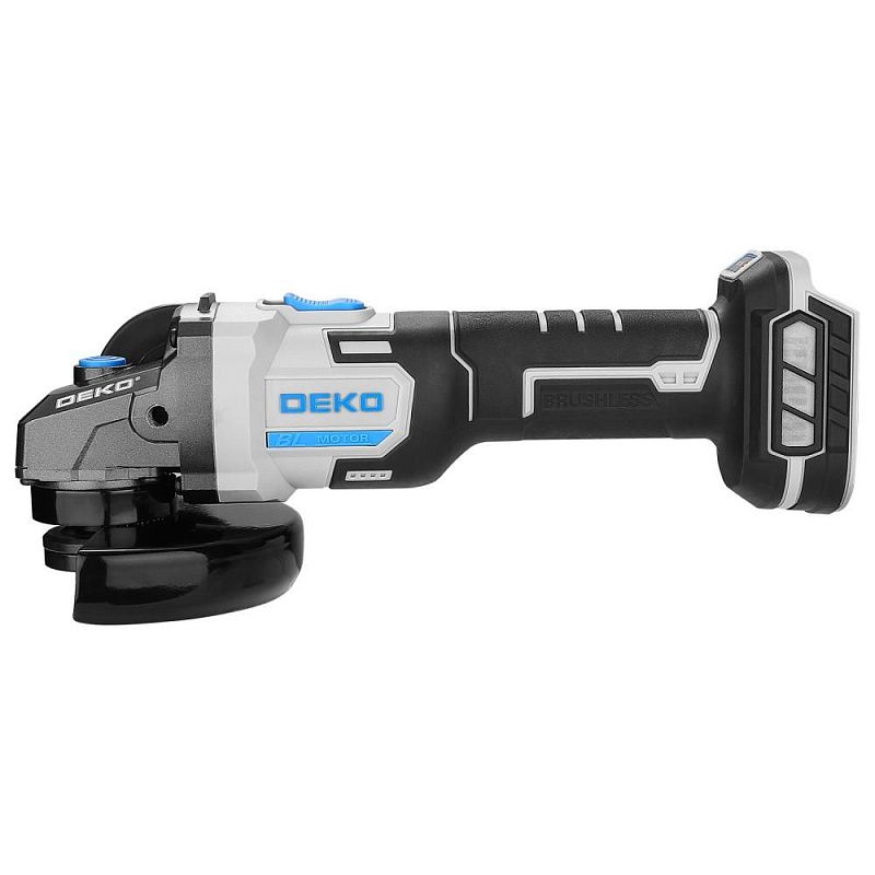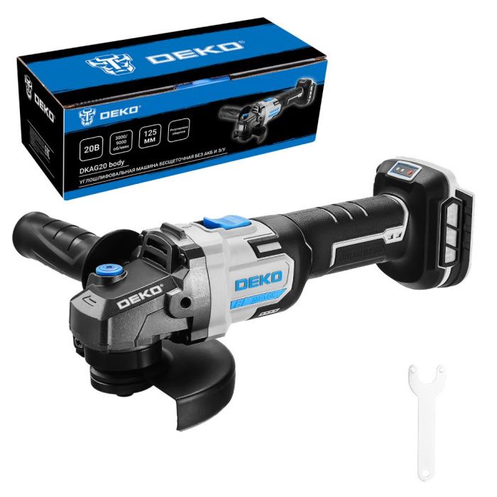 - Углошлифовальная машина бесщеточная DEKO DKAG20, 20В, без АКБ и з/у предназначена для шлифования и разрезания дерева, металла, камня, бетона и керамики, а также для обработки шлифовальной бумагой и проволочной щеткой.