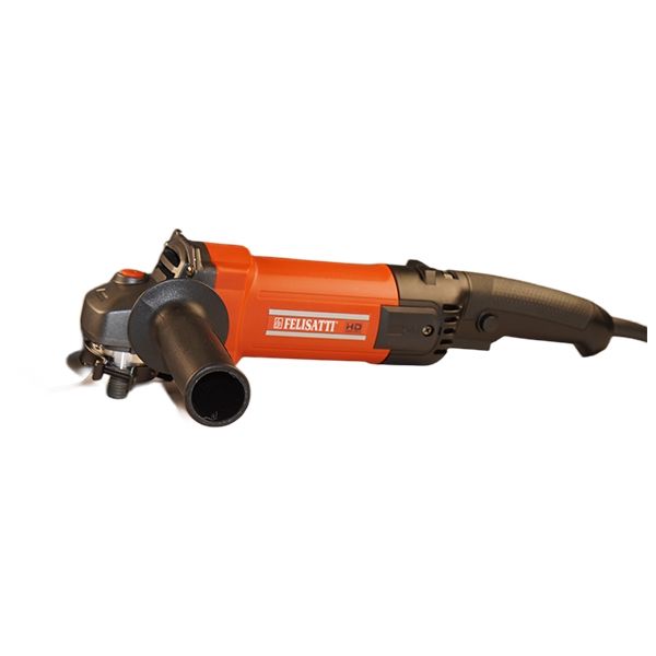 Угловая шлифовальная машина 125/1100 FT8211 Felisatti предназначена для абразивной резки металлов, камня, кирпича и бетона. Может применяться для шлифовки поверхностей с помощью шлифовальных и лепестковых дисков. Также для зачистки, обдирки поверхностей. Благодаря небольшому весу и удобному хвату УШМ можно использовать в различных положениях в условиях ограниченного пространства. Несмотря на габариты, модель обладает мощным двигателем. Конструкции имеет дополнительную защиту двигателя от пыли и шлама – применено бронирование якоря и статора двигателя. Это позволяет использовать инструмент при тяжелых работах. Выключатель с возможностью фиксации во включённом положении для комфортного выполнения серийной работы. Блок регулировки оборотов позволяет подобрать оптимальные параметры для выполнения различных работ.
