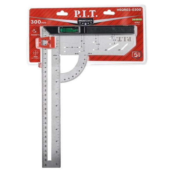 Угольник разметочный магнитный с пузырьковым уровнем DRUA HSQR03-0300 (300мм, транспортир) PIT HSQR03-0300