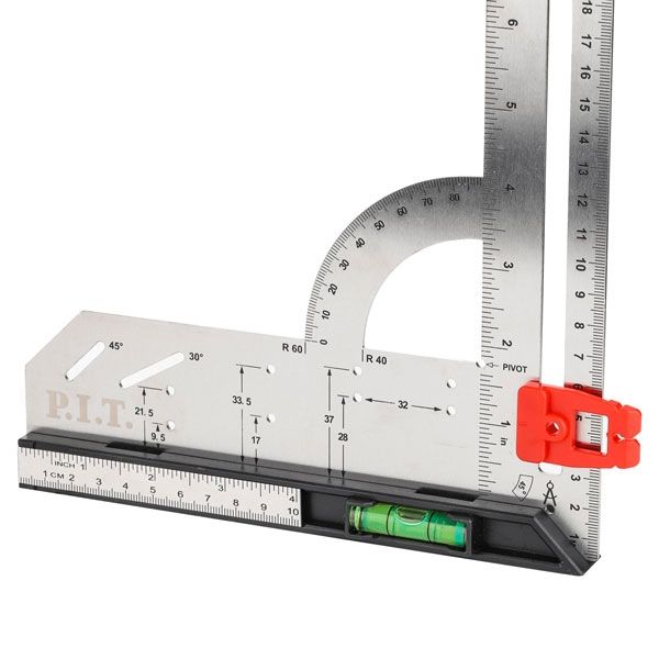 Угольник разметочный магнитный с пузырьковым уровнем P.I.T. DRUA HSQR03-0300 (300мм, транспортир).