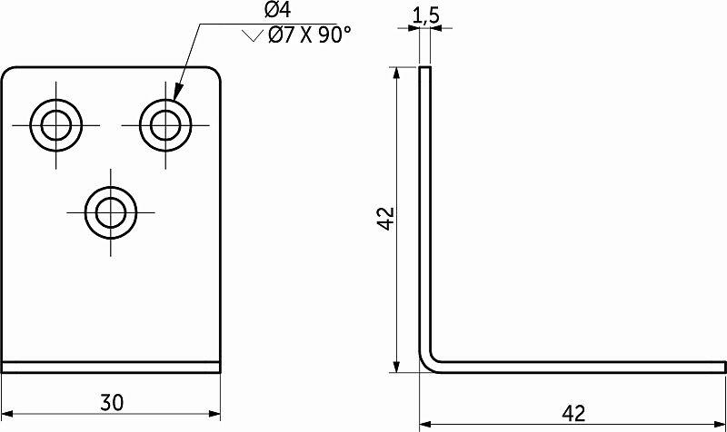 Металлические уголки бывают с одним отверстием в полке, двумя или более, различных форм и размеров (широкие тип FSC-01 и узкие тип FCS-04), специальных форм тип FSC-03 и FCC-06, с ребрами жесткости или без, различных толщин от 1,0 мм до 2,0 мм. По длине полки в мебельном производстве чаще всего применяются металлические уголки от 20 мм до 80 мм, по ширине от 15 мм до 45 мм. Чаще всего металлические уголки встречаются в белом и желтом цинке.Технические характеристики: