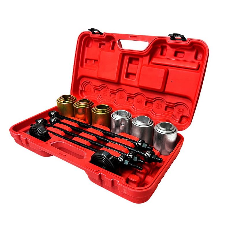 Набор используется для снятия и установки подшипников, подшипников с резиновой втулкой, сайлентблоков, втулок.