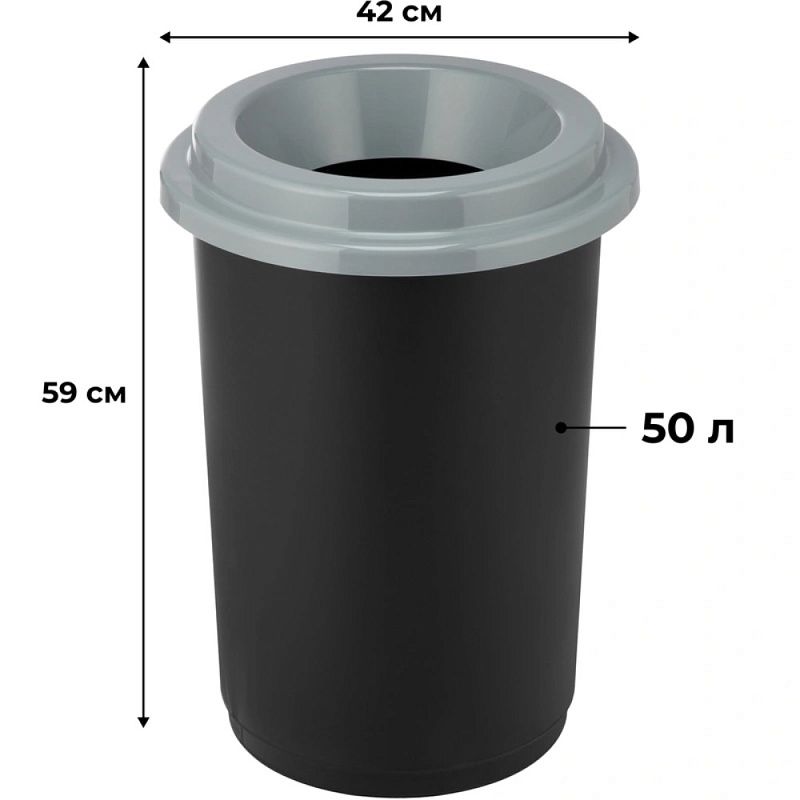 Урна для мусора "Idea Эко", 50 л, пластик, черный, серый