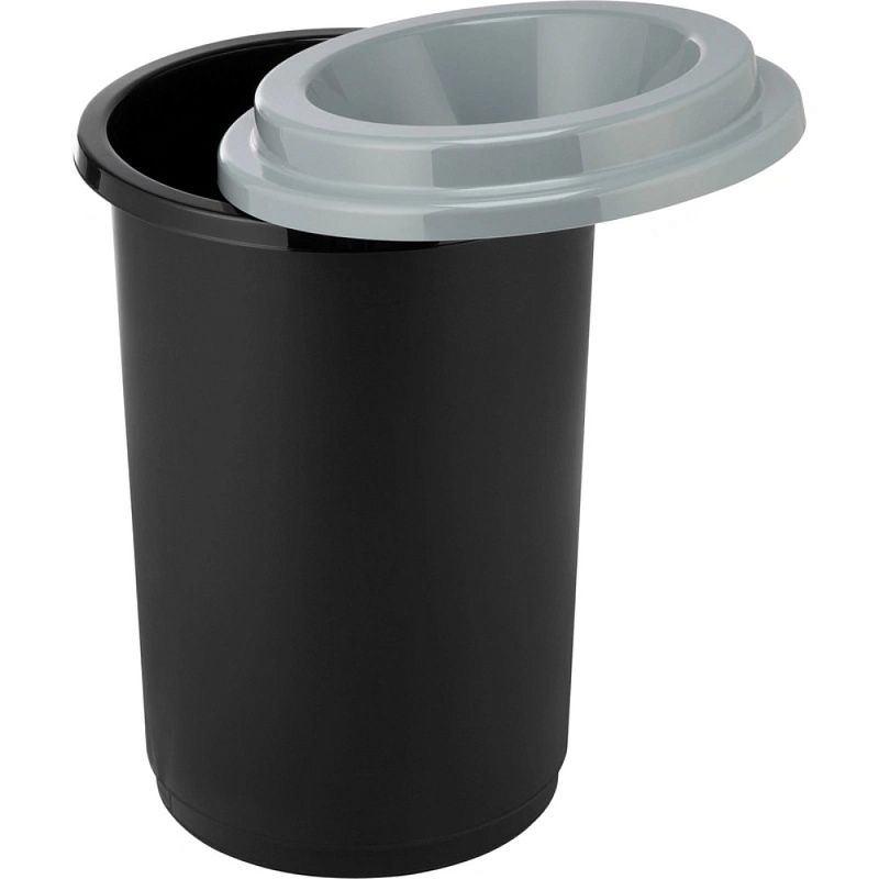 Урна для мусора выполнена из высококачественного пластика, отвечающего всем нормам экологической безопасности. Практичный, немаркий чёрный цвет и серая крышка. Контейнер вместительный, прочный, устойчив к ударам, легко очищается, не сохраняет нежелательных запахов.