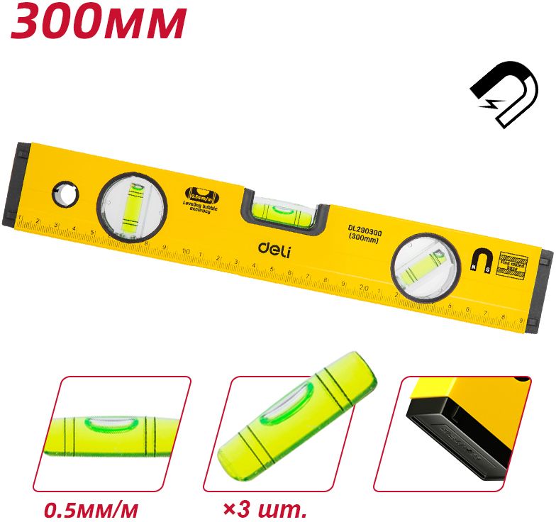 Уровень Deli 300 мм, пузырьковый