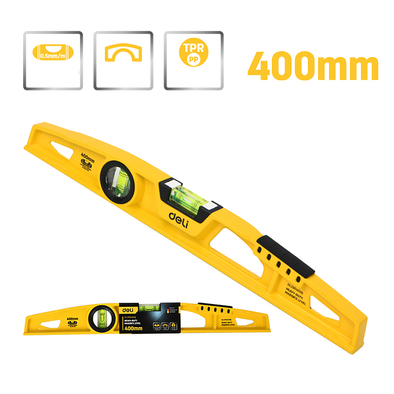 Уровень строительный Deli YS EDL290400Q, литой, 400 мм, с двойным обзором, пузырьковый