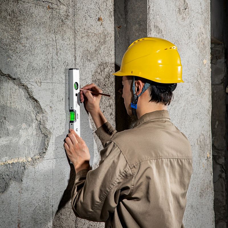 Изготовленный из алюминиевого сплава, он обладает высокой прочностью и долговечностью, а мягкая резина на обоих концах уровня предотвращает скольжение инструмента в руках.