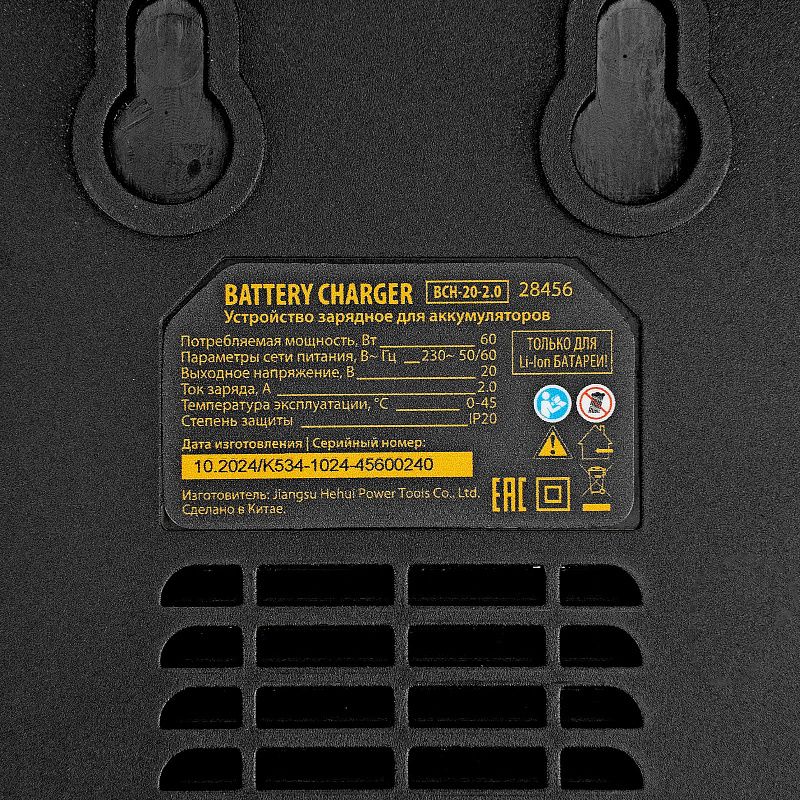Устройство зарядное для аккумуляторов BCH-20-2.0, Li-Ion, 20 В, 2,0 А Denzel 28456