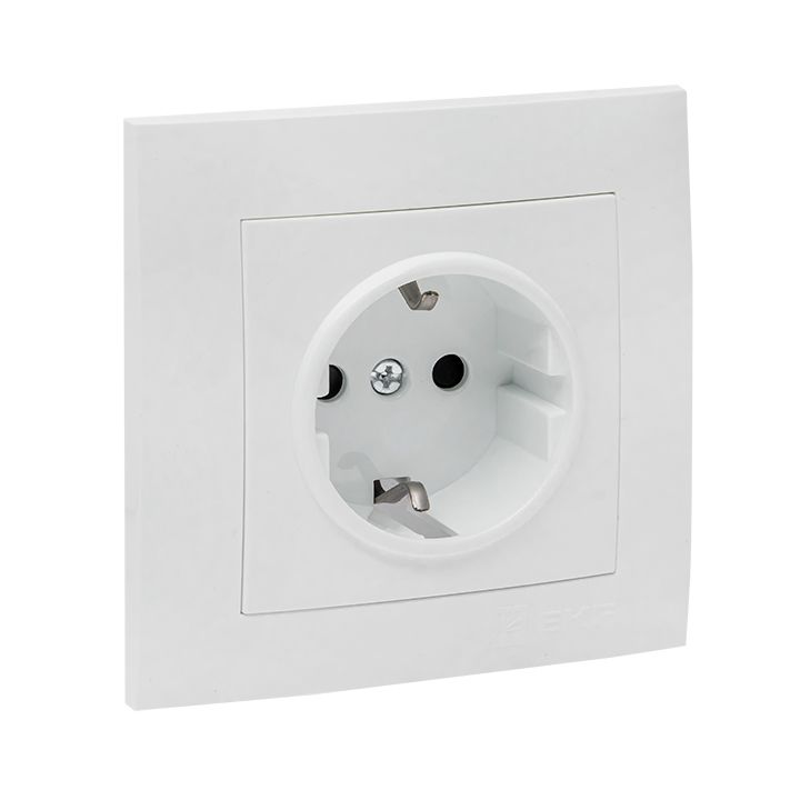 Валенсия розетка 1-местная с/з 16А белая с защ, штор, EKF PROxima EWR16-028-10, технические характеристики:
