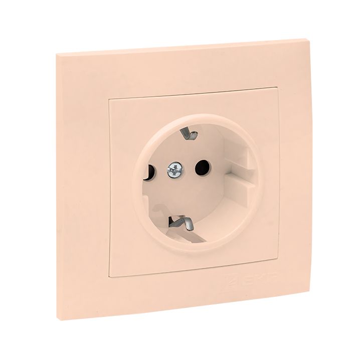 Валенсия розетка 1-местная с/з 16А кремовая с защ, штор, EKF PROxima EWR16-028-20