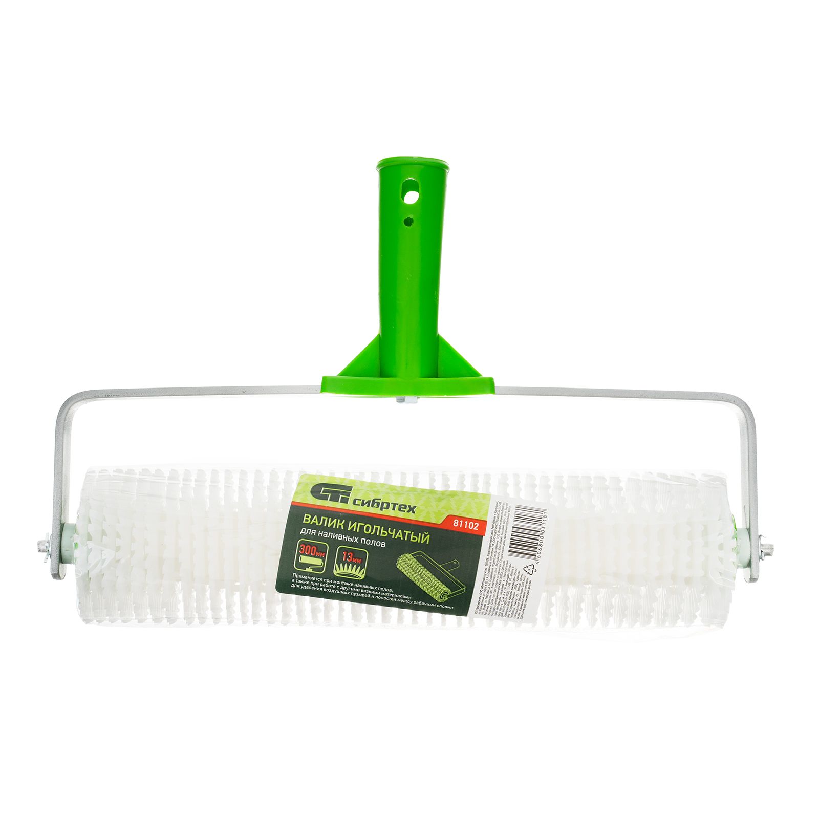 Игольчатый валик Сибртех 81102 длиной 300 мм используется для монтажа наливных полов. Позволяет удалять пузырьки воздуха из толщи еще жидкого покрытия путем его интенсивного прокатывания по распределенному на поверхности основы раствору. Валик длиной 300 мм можно использовать на поверхности большой площади. Длина иголок 13 мм оптимальна для покрытий небольшой толщины.