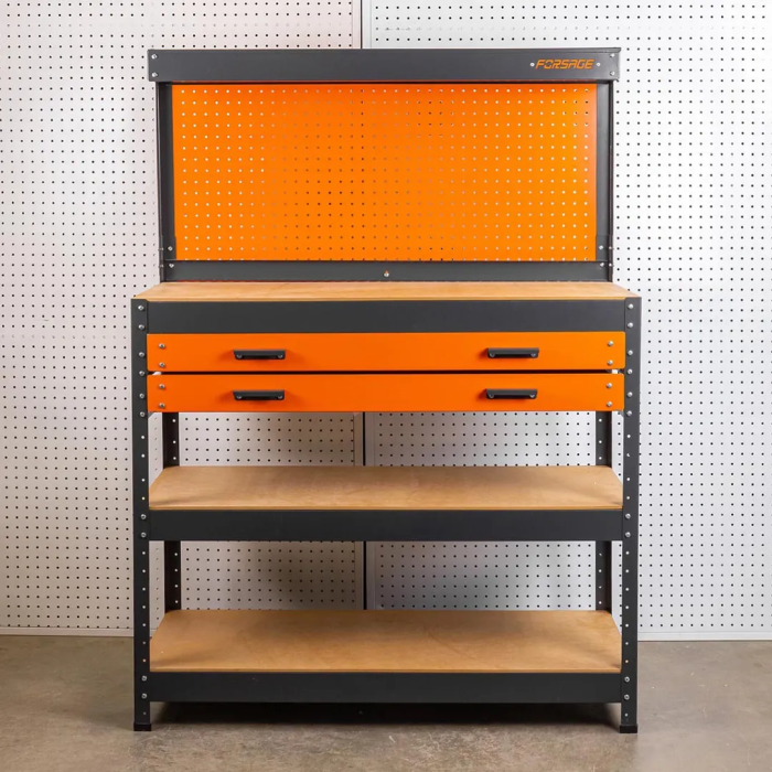Верстак металлический 1000х400х1400 мм с двумя выдвижными полками Forsage F-WT00306