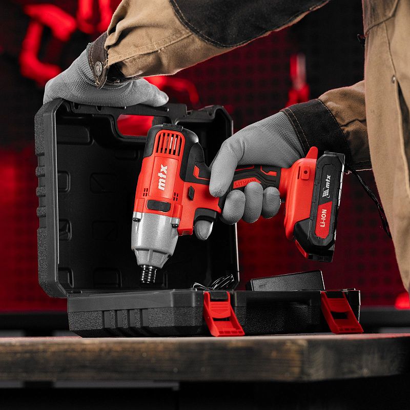 Ударный аккумуляторный винтоверт MTX CIDS-20-280 26580, в комплекте с аккумулятором 20 В емкостью 2 А·ч и зарядным устройством, предназначен для закручивания и откручивания винтов, шурупов, болтов и гаек. Развивает крутящий момент до 280 Н·м, что позволяет успешно решать поставленные задачи. Ударный механизм упрощает работу с туго затянутым или заржавевшим крепежом.
