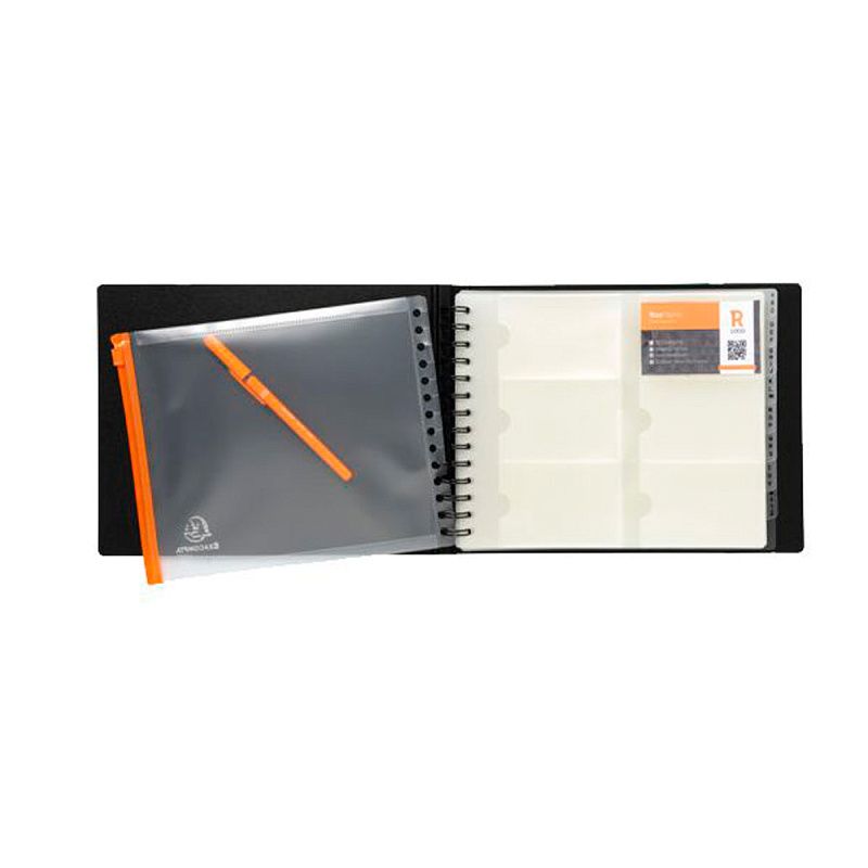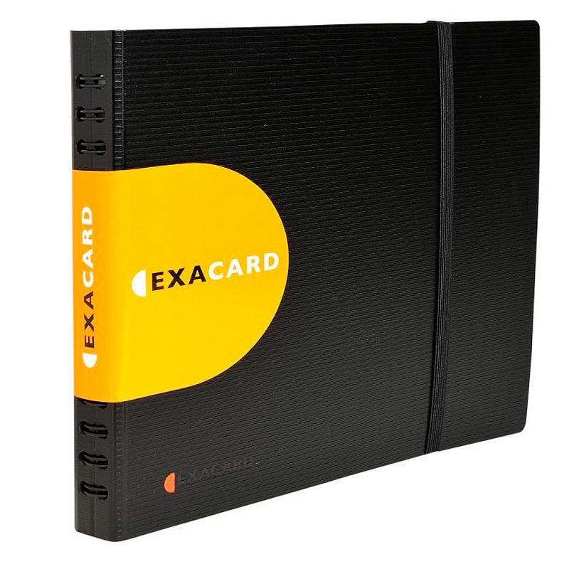 Визитница Exacard содержит 20 листов на 120/240/360 визитных карточек размером 60×90 мм. Эластичный ремешок гарантирует безопасное закрытие визитницы. А экологически чистый материал Exacard не только устойчив к внешним воздействиям и влаге, что обеспечивает сохранность ваших визитных карт, но и на 80% состоит из вторично переработанных материалов.