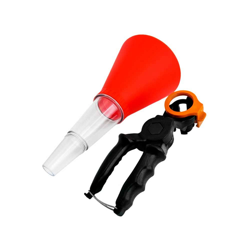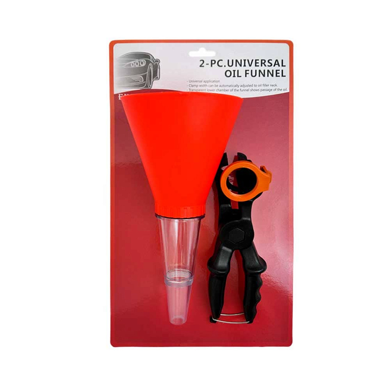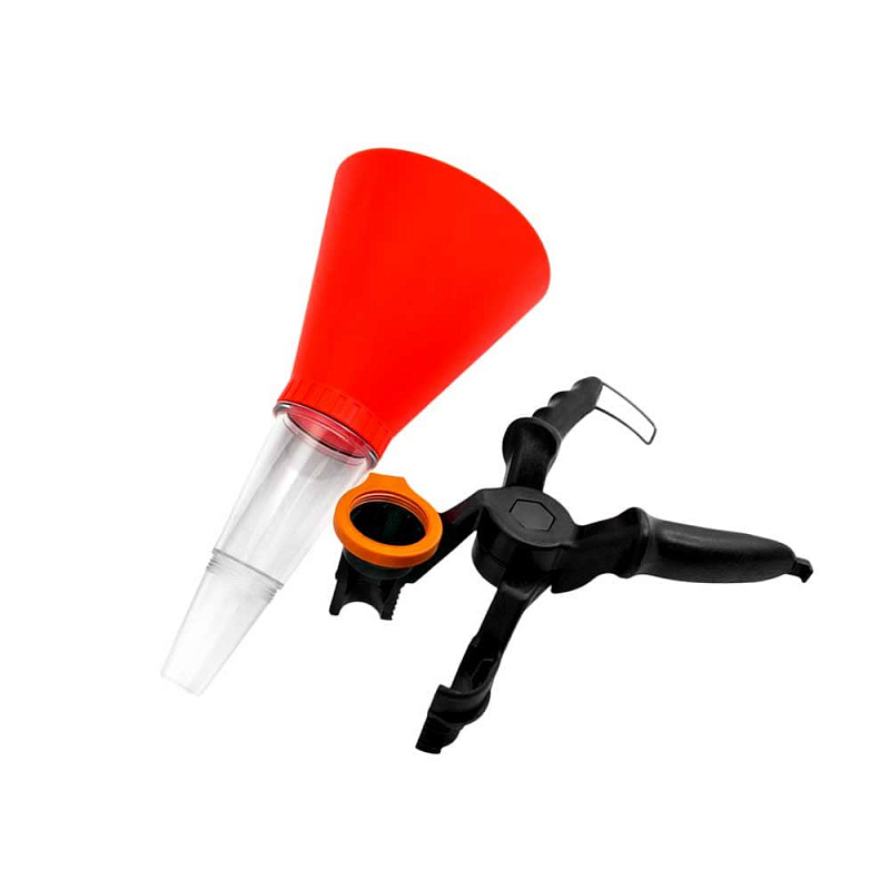 Ширина зажима может автоматически подстраиваться под маслозаливную горловину, что не допускает пролив масла на двигатель или пол.