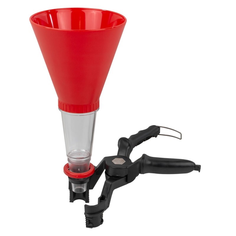 Ширина зажима может автоматически подстраиваться под маслозаливную горловину, что не допускает пролив масла на двигатель или пол.