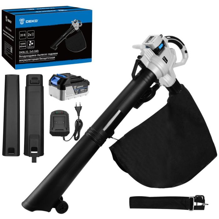- Воздуходувка-пылесос садовая аккумуляторная бесщеточная DEKO DKBL22 предназначена для уборки территории, сбора сухих листьев возле дома и в саду.