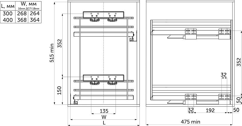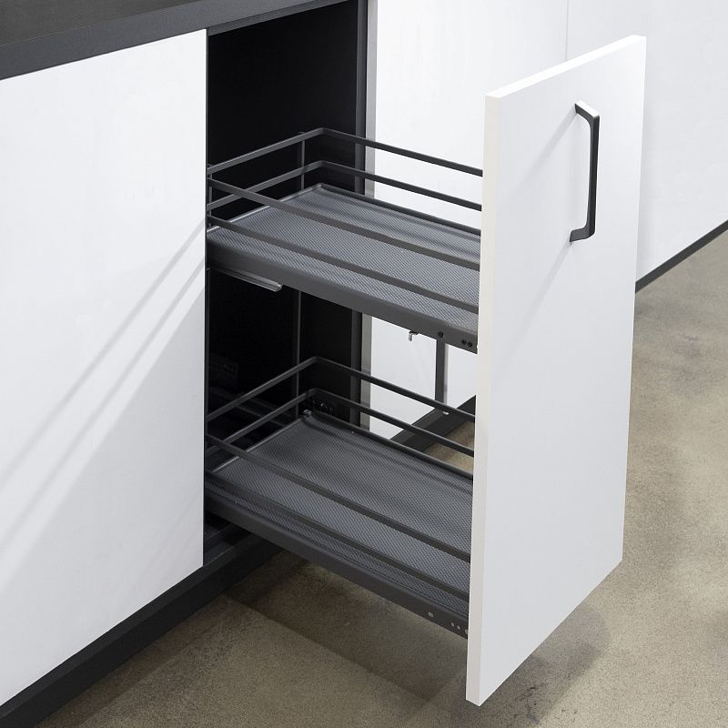 Выдвижные корзины-карго FOCUSпремиальное решение для организации хранения на кухне: -современный дизайн, стильный, лаконичный внешний вид в матовом графитовом цвете, -толстый надежный прут, стальное дно из листового металла, жесткая сварная конструкция, качественные сварные швы (лазерная сварка), -эпоксидно-полиэфирное покрытие, -для более жесткой фиксации корзины рекомендуется диагональное крепление направляющих к ящику, -в корзине предустановлено противоскользящее покрытие, -направляющие скрытого монтажа с доводчиком PRIME by AKS полного выдвижения с нагрузкой до 25 кг (рекомендованная нагрузка на корзину 20кг), -съемное крепление к фасаду с 3D регулировкой (возможна установка в ящик под выдвижной и распашной фасад), -в корзине установлен комплект быстрого монтажа направляющих, предусмотрена подробная инструкция и шаблон для быстрой и легкой установки, -возможна установка в уже собранный ящик, -подходит для ящика как с ДСП 18 мм, так и с ДСП 16 мм. Продуманная конструкция корзин помогает организовать хранение бутылок, банок, столовой посуды, продуктов на кухне. В комплекте: -стальная двухуровневая корзина с противоскользящим ковриком (графит) - 1 шт, -комплект направляющих скрытого монтажа с доводчиком с лого PRIME by AKS - 1 компл, -комплект пластиковых вставок для ДСП16, -комплект быстрой установки направляющих (установлены в корзине), -комплект креплений к фасаду, -комплект крепежей, -шаблон для установки PRIME by AKS - 1 шт, -брендированная инструкция PRIME by AKS - 1 шт.Технические характеристики: