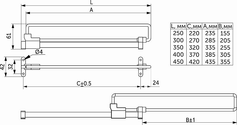 Выдвижная вешалка L-250, хром/черный AKS 113676, описание: