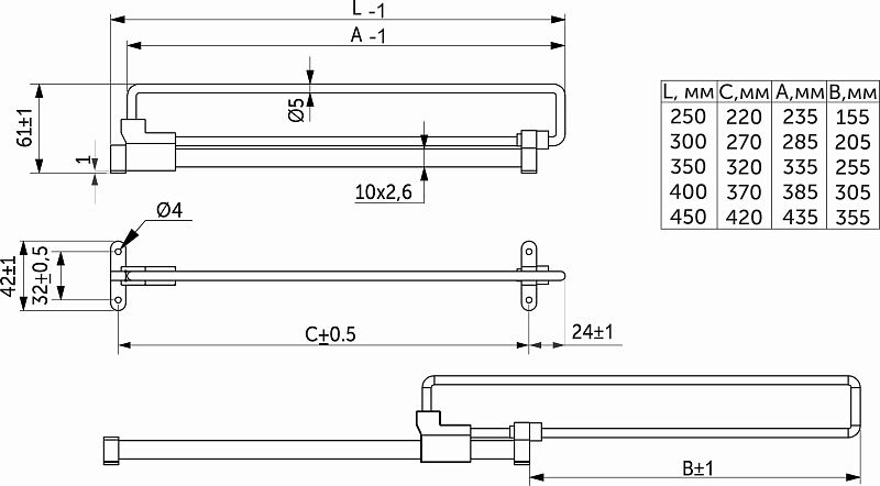 Выдвижная вешалка для одежды, устанавливаемая внутри шкафа для оптимальной организации хранения одежды в шкафу. Длина: 400 мм. Преимущества:легкий монтаж, занимает мало места в шкафу, бюджетный вариант. Крепежи для установки приобретаются отдельно.Технические характеристики: