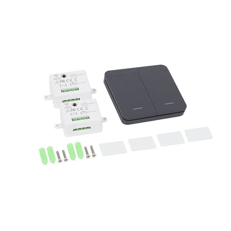 Выключатель беспроводной, с реле, 2 клавиши, графит, AKS 124646, описание: