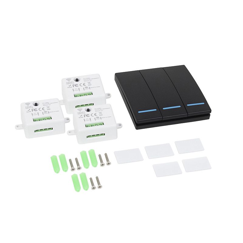 Выключатель беспроводной, с реле, 3 клавиши, черный, AKS 124644, описание: