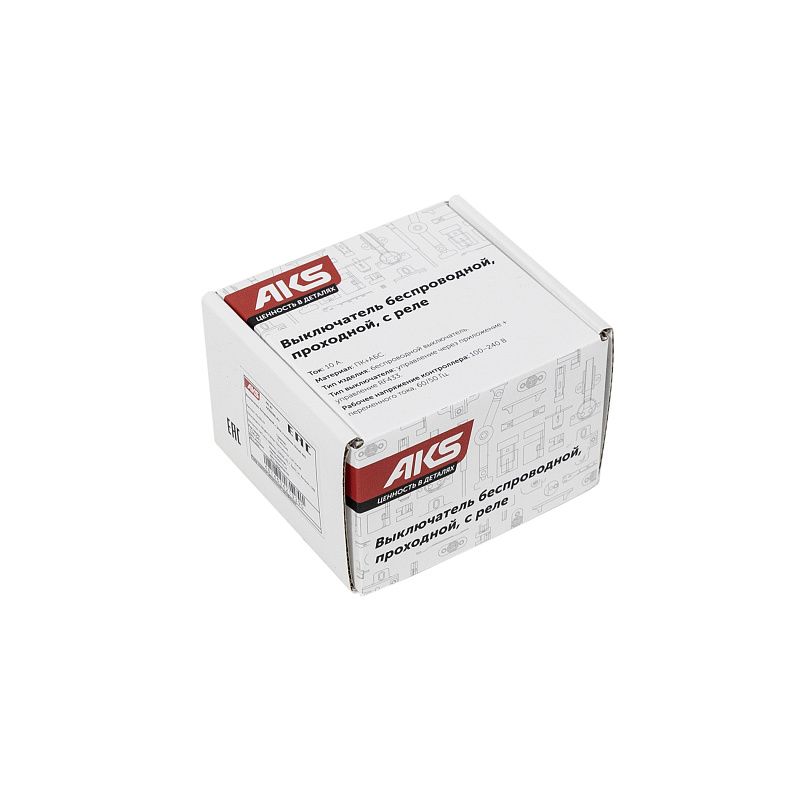 Выключатель беспроводной, с реле, проходной, 1 клавиша, белый, AKS 124648, описание: