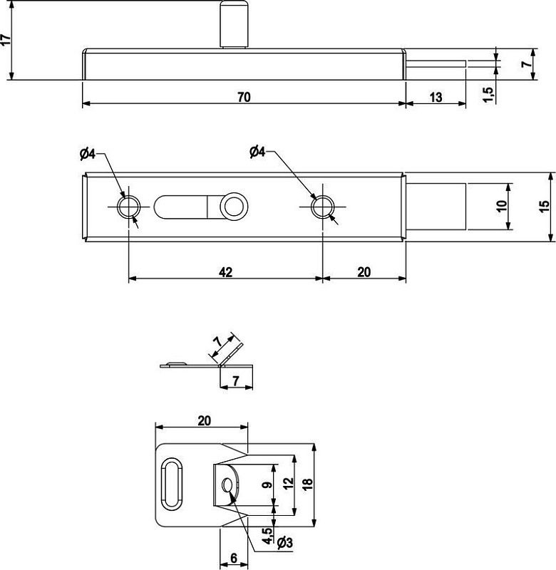 Это специальный простой в монтаже механизм, который служит для фиксации и запирания дверей мебели. Данный шпингалет характеризуется своими минималистическими размерами.Технические характеристики: