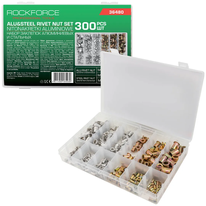Набор резьбовых алюминиевых и стальных заклепок М3-М10 300 пр RockForce RF-36480